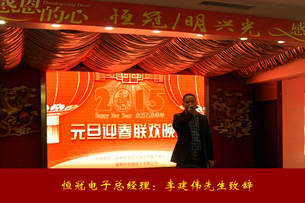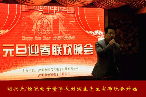 2014年12月31日晚18:15分,庄闲和游戏元旦联欢晚会在石岩街道旺阁渔村隆重举行,庄闲和游戏、恒冠电子企业领导以及全体职员近200人参加了晚会。