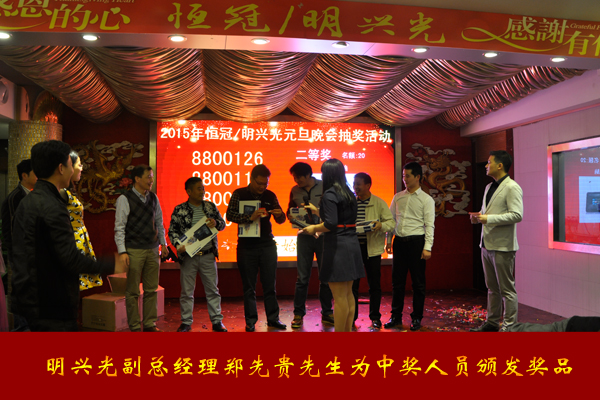 值得一提的是,本次元旦联欢晚会采用LED显示屏滚动抽奖方式,将晚会推向最高潮。本次设置了五个奖项:特等奖、现金奖、一等奖、二等奖、三等奖;奖品丰富多样,中奖人员也纷纷带来才艺展示和祝福。