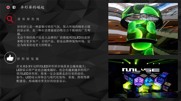 LED异形屏它是一种新颖可烘托气氛、装点环境的精彩点缀的显示屏,是一种在消费最前沿吸引万千眼球的广告利器。