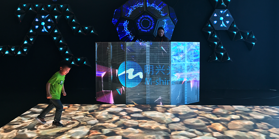 互动LED地砖屏,采用高分辨率追踪技术,单块面板上置入过百个传感器,小面积多重追踪,互动效果令人惊叹