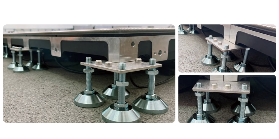 增加每台箱体下方的承重柱数量,保证整屏的韧性和强度,确保1.5吨的单平米承重,且保证当屏体表面重力增加时,立柱不断裂